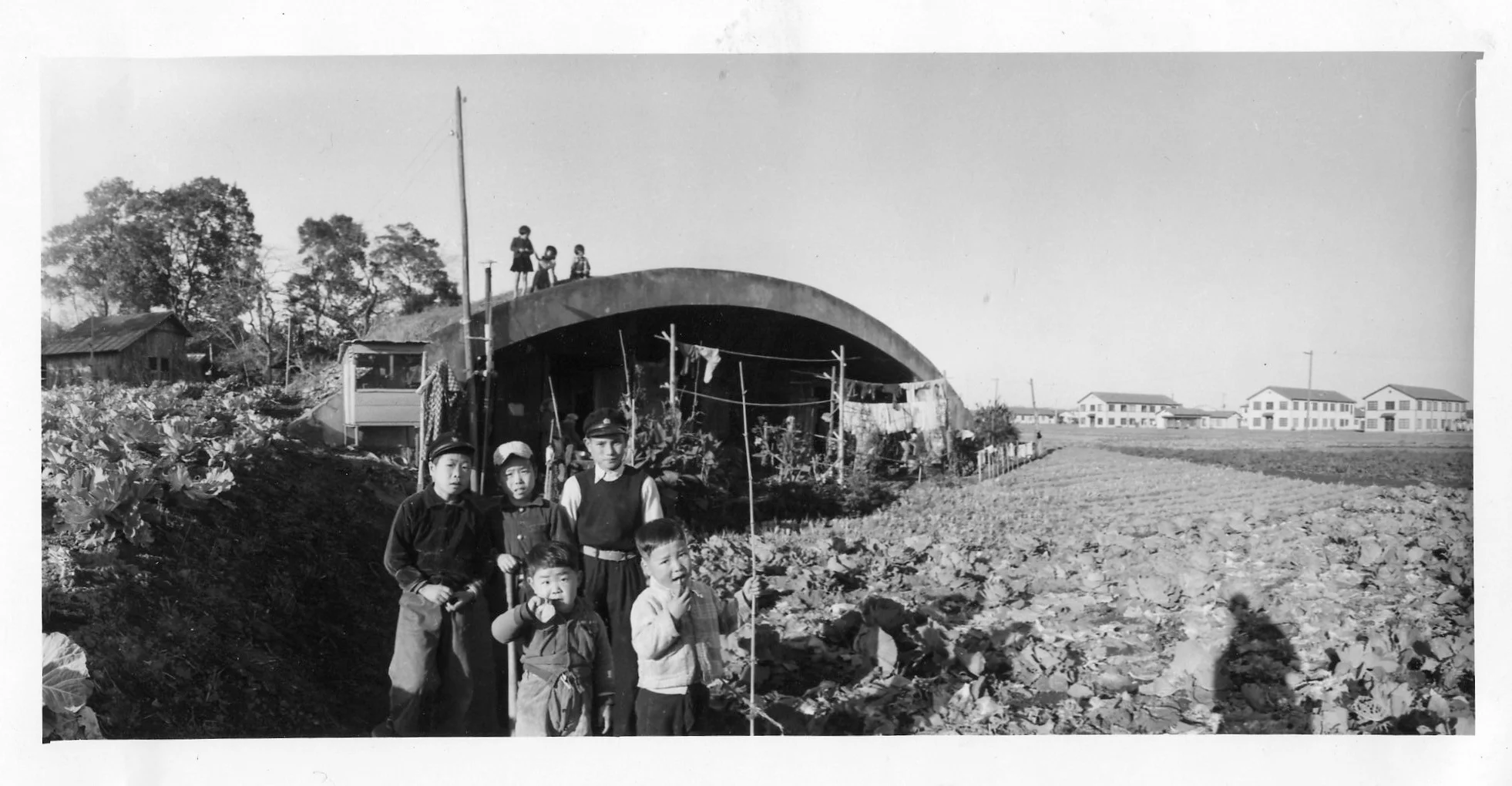 The photographs my father, Ray Zabielski, captured revealed his aesthetic intentions and his values; Japanese children posed in front of their home in an abandoned bomb shelter, Tachikawa Air Force Base housing in the background, Dad's shadow in the field.