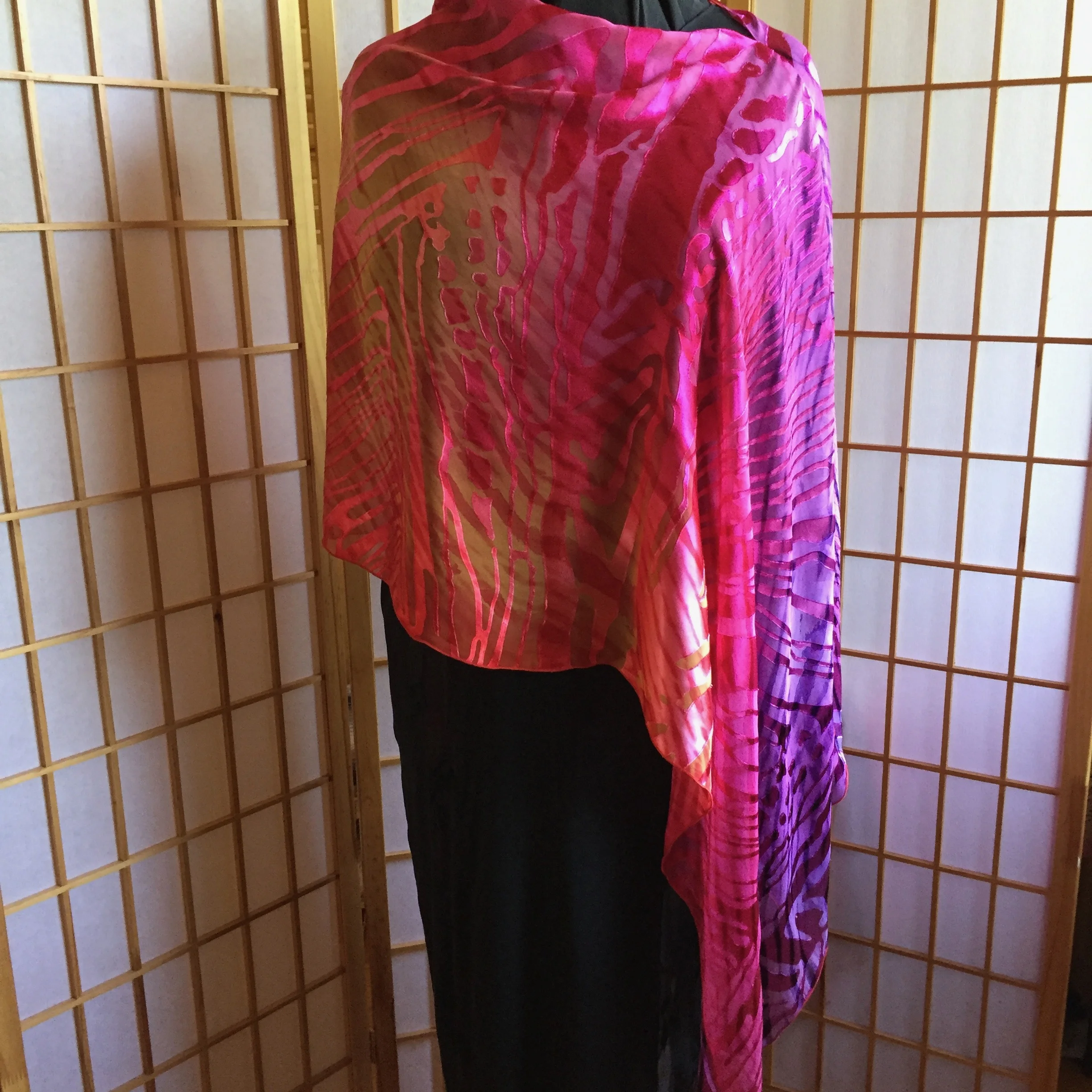 “Your beautiful scarf arrived and it some of your best work. It truly is magic. I am proud of you and delighted to have had a front row seat in observing your metamorphic evolution as a fabric artist. Laverne, you truly astound me.”